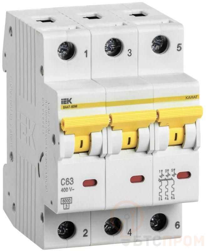 Выключатель автоматический модульный 3п C 63А 6кА ВА47-60M KARAT IEK MVA31-3-063-C фото в каталоге от BTSprom.by