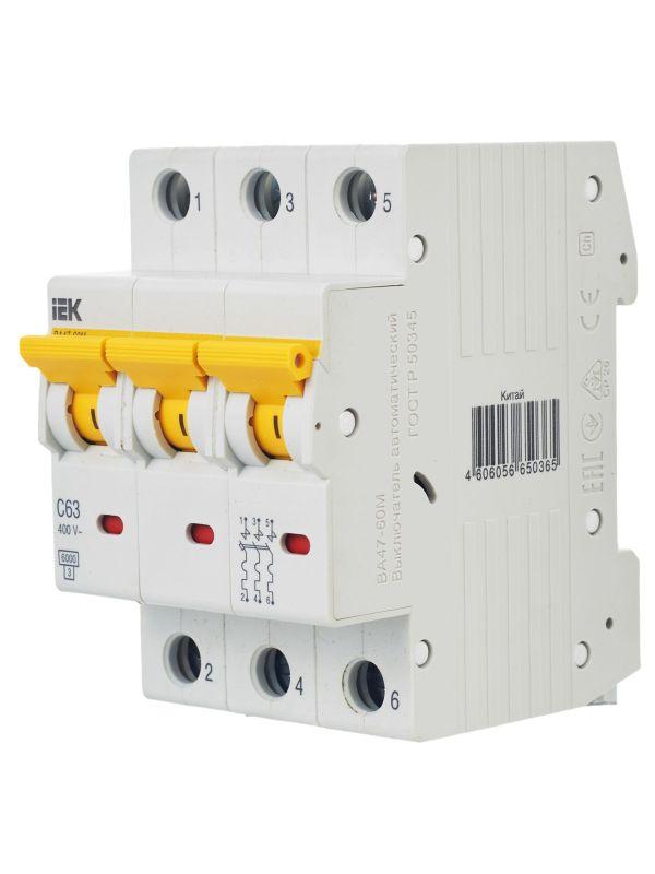 –Выключатель автоматический модульный 3п C 63А 6кА ВА47-60M KARAT IEK MVA31-3-063-C