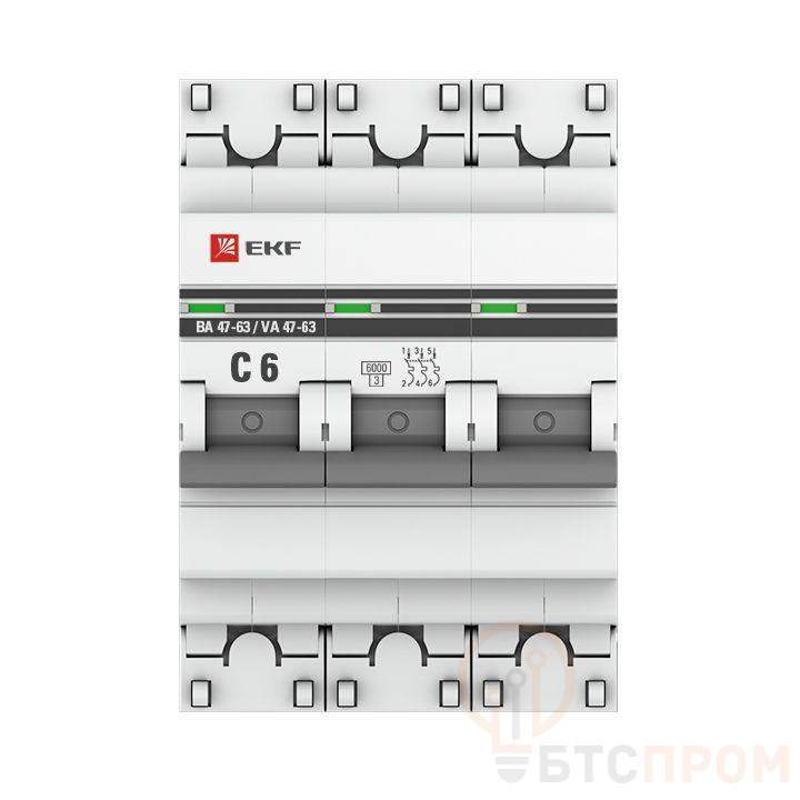 Выключатель автоматический модульный 3п C 6А 6кА ВА 47-63 PROxima EKF mcb4763-6-3-06C-pro фото в каталоге от BTSprom.by