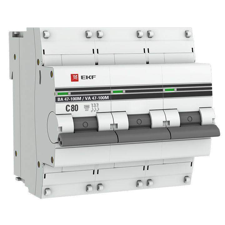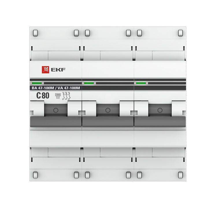Выключатель автоматический модульный 3п C 80А 10кА ВА 47-100M электромагнит. расцеп. PROxima EKF mcb47100m-3-80C-pro