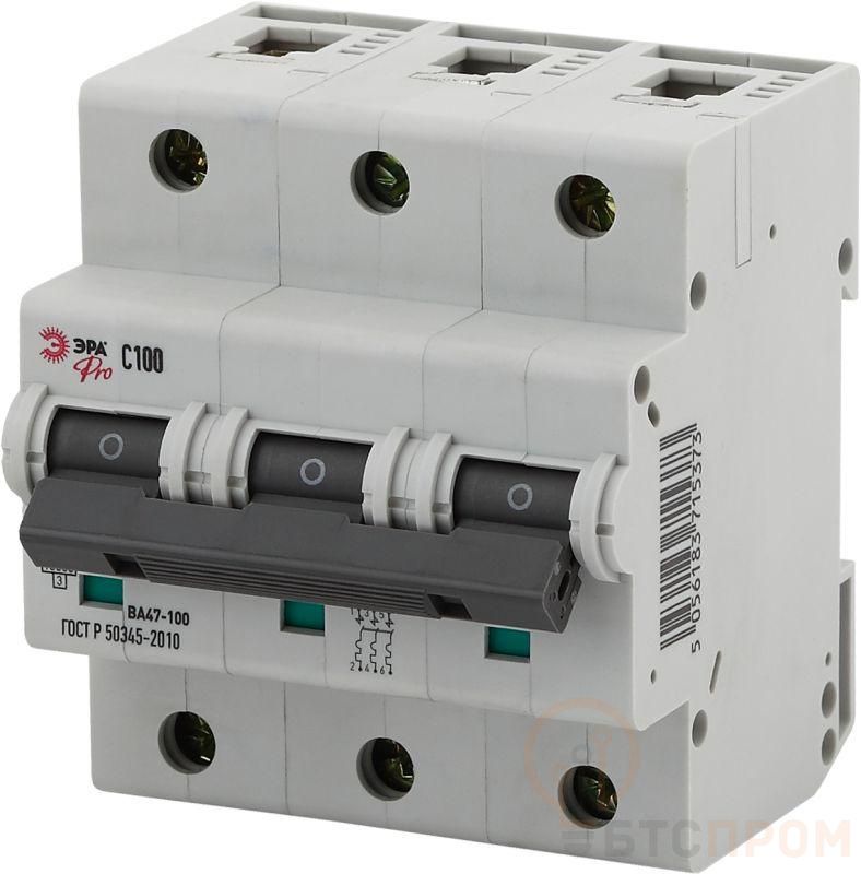 Выключатель автоматический модульный 3п D 100А 10кА ВА47-100 PRO NO-902-291 ЭРА Б0048881 фото в каталоге от BTSprom.by