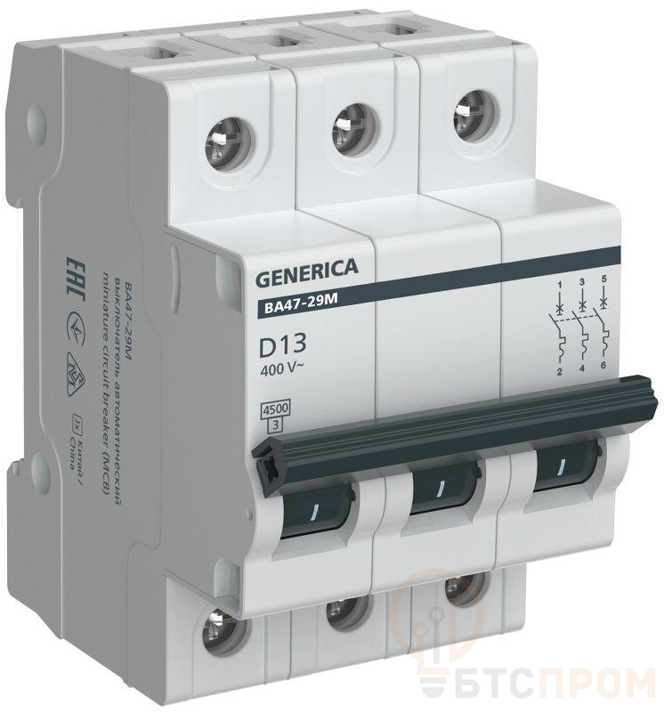 –Выключатель автоматический модульный 3п D 13А 4.5кА ВА47-29М GENERICA MVA21-3-013-D-G