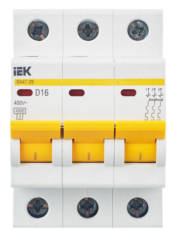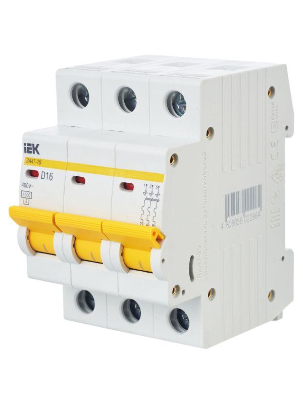 Выключатель автоматический модульный 3п D 16А 4.5кА ВА47-29 KARAT IEK MVA20-3-016-D фото в каталоге от BTSprom.by
