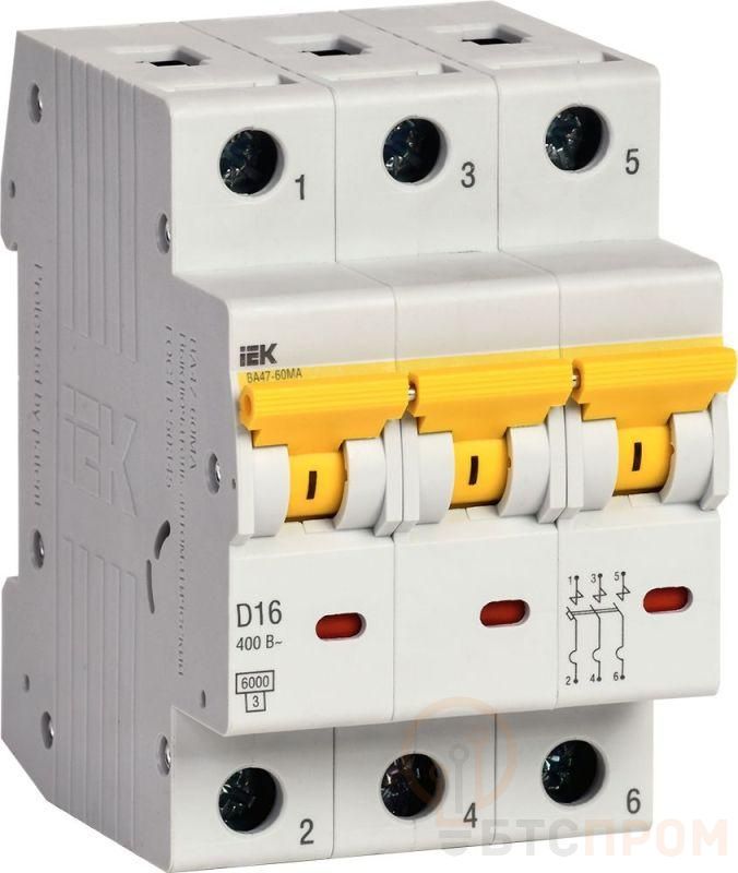 Выключатель автоматический модульный 3п D 16А 6кА ВА47-60МА без тепл. расцеп. KARAT IEK MVA33-3-016-D