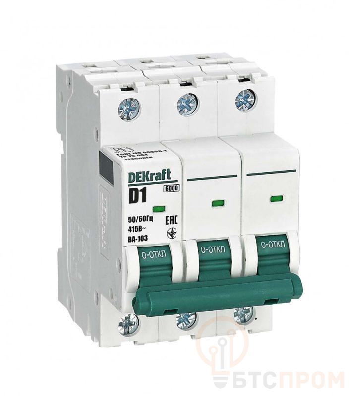 Автоматический выключатель серии ВА-103 NEW Dekraft; 3P; номинальный ток 1 А; характеристика D; отключающая способность 6 кА, что позволяет использовать аппараты в качестве вводных. 5 монолитных заклепок повышают прочность корпуса аппарата. Окошко-индикатор всегда показывает состояние контактов вне зависимости от положения рукоятки управления. Боковые каналы охлаждения повышают стабильность работы при высоких температурах окружающей среды. Есть возможность установки дополнительных аксессуаров с левой стороны устройства. Аппарат на 100% совместим с корпусами и оболочками Dekraft, Systeme Electric.