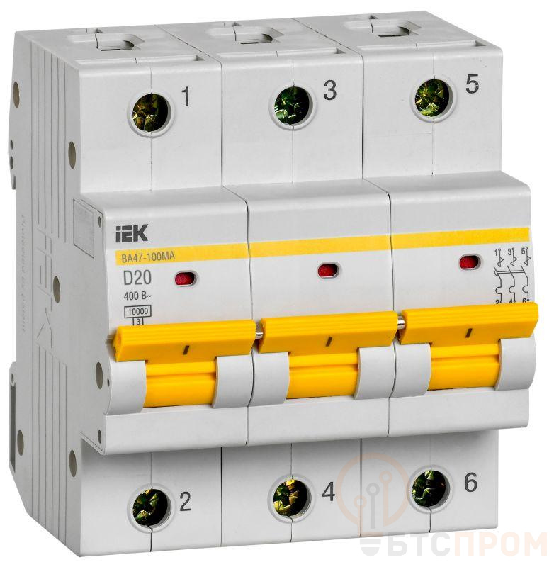 Выключатель автоматический модульный 3п D 20А 10кА ВА47-100МА без тепл. расцеп. KARAT IEK MVA43-3-020-D