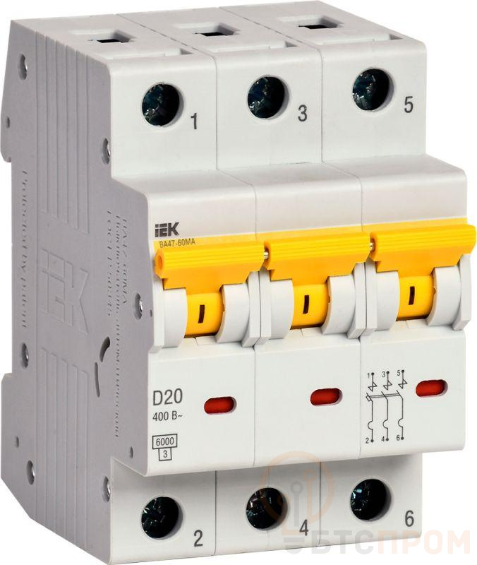 Выключатель автоматический модульный 3п D 20А 6кА ВА47-60МА без тепл. расцеп. KARAT IEK MVA33-3-020-D
