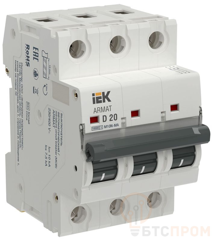 Выключатель автоматический модульный 3п D 20А M10N-MA без тепл. расцеп. ARMAT IEK AR-M10N-MA-3-D020 фото в каталоге от BTSprom.by