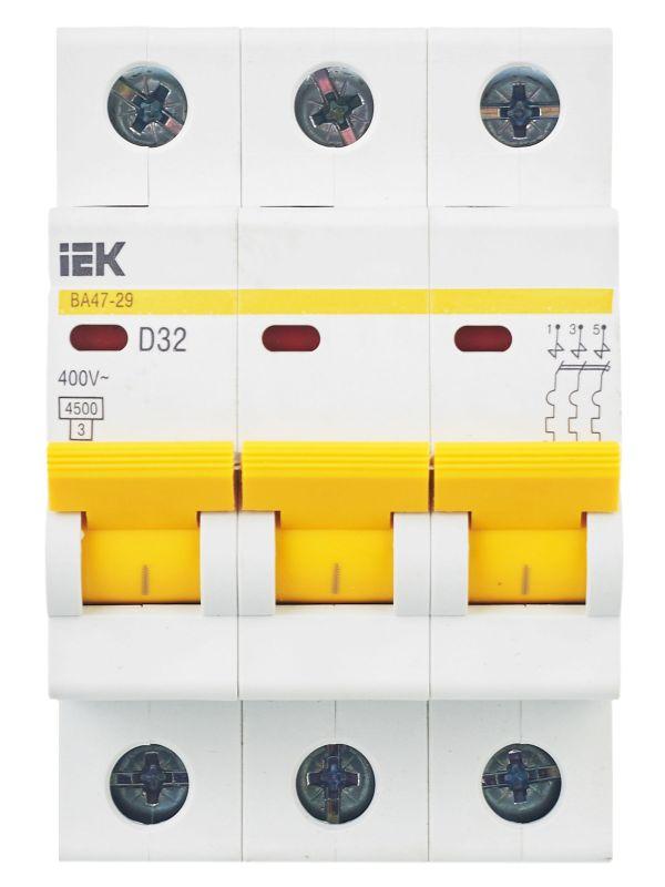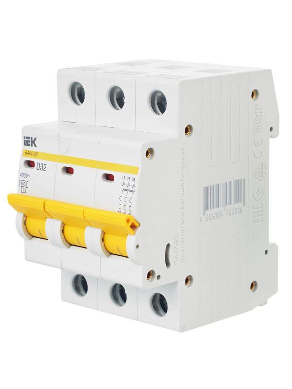 –Выключатель автоматический модульный 3п D 32А 4.5кА ВА47-29 KARAT IEK MVA20-3-032-D