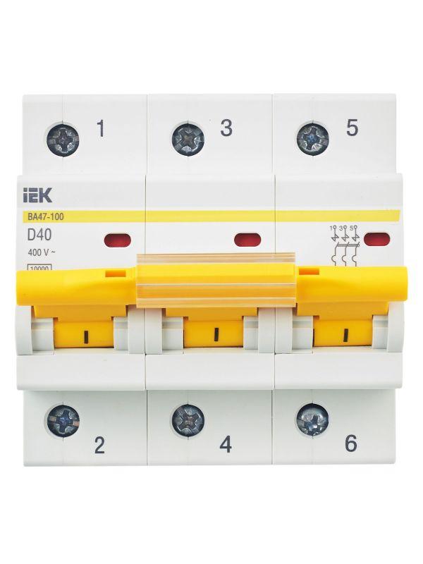 Выключатель автоматический модульный 3п D 40А 10кА ВА47-100 KARAT IEK MVA40-3-040-D фото в каталоге от BTSprom.by