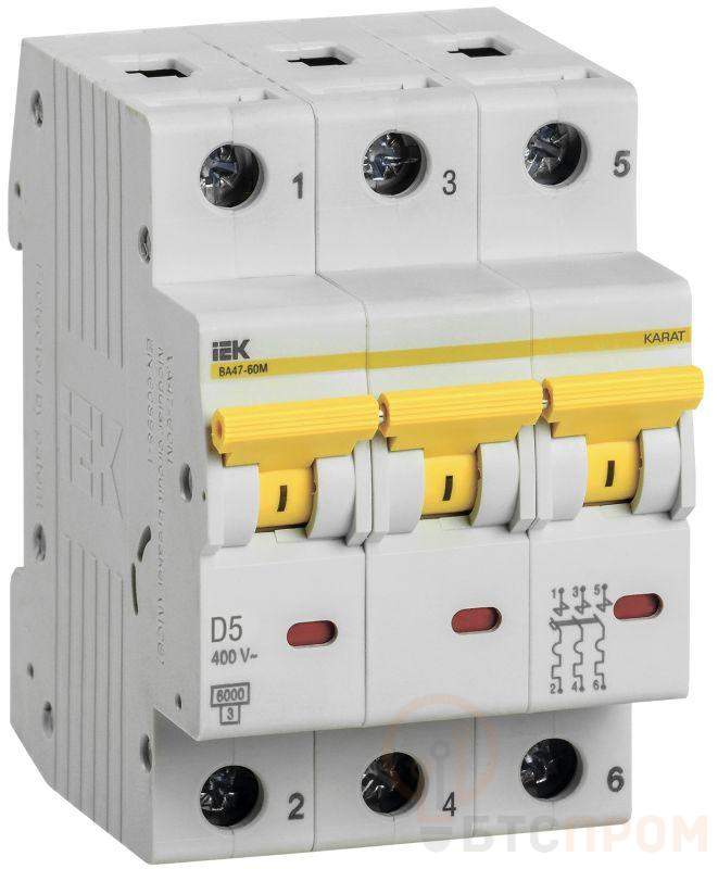 Выключатель автоматический модульный 3п D 5А 6кА ВА47-60M KARAT IEK MVA31-3-005-D