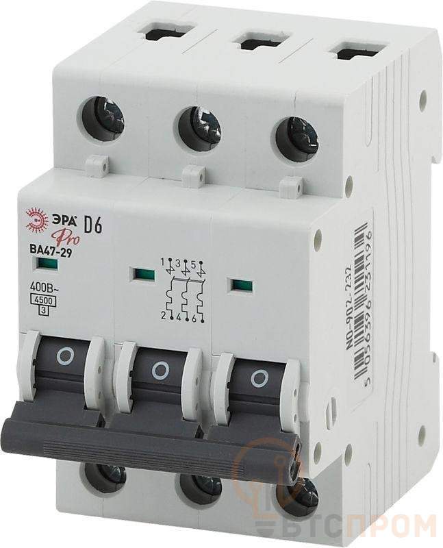 Выключатель автоматический модульный 3п D 6А 4.5кА ВА47-29 PRO NO-902-233 ЭРА Б0048823