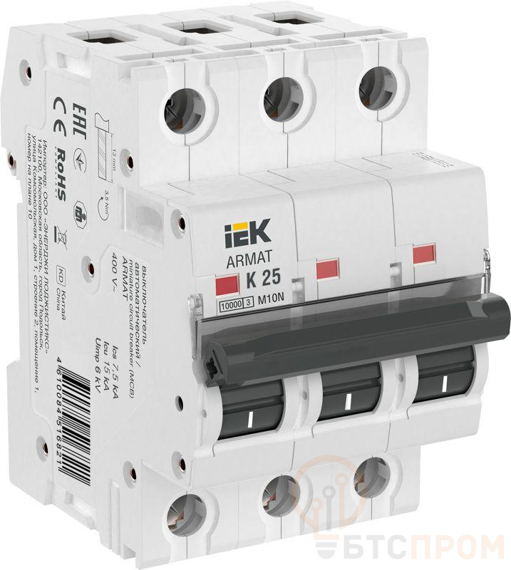 Выключатель автоматический модульный 3п K 25А M10N ARMAT IEK AR-M10N-3-K025 фото в каталоге от BTSprom.by