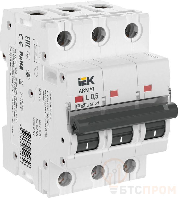 Выключатель автоматический модульный 3п L 0.5А M10N ARMAT IEK AR-M10N-3-L0D5 фото в каталоге от BTSprom.by