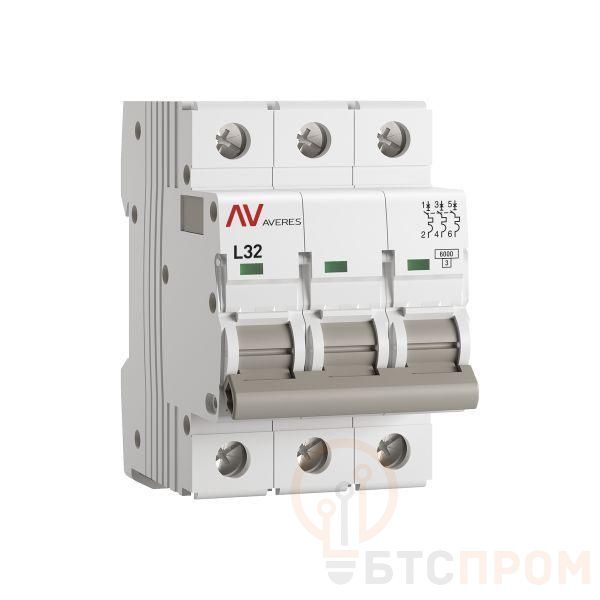 –Выключатель автоматический модульный 3п L 32А 6кА AV-6 AVERES EKF mcb6-3-32L-av