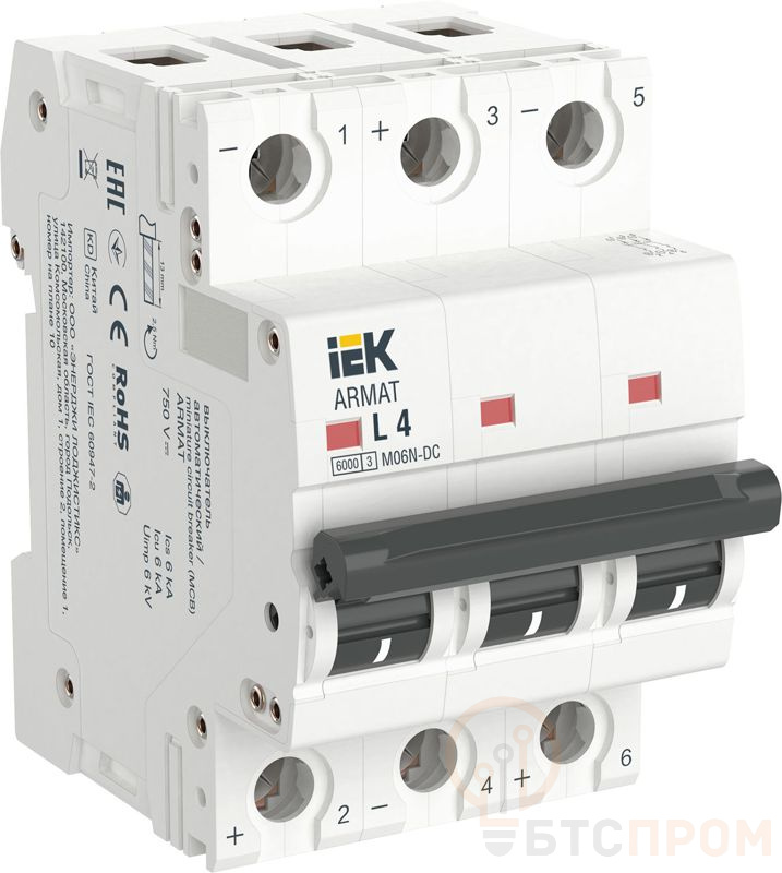 Выключатель автоматический модульный 3п L 4А M06N-DC ARMAT IEK AR-M06N-3-L004DC фото в каталоге от BTSprom.by