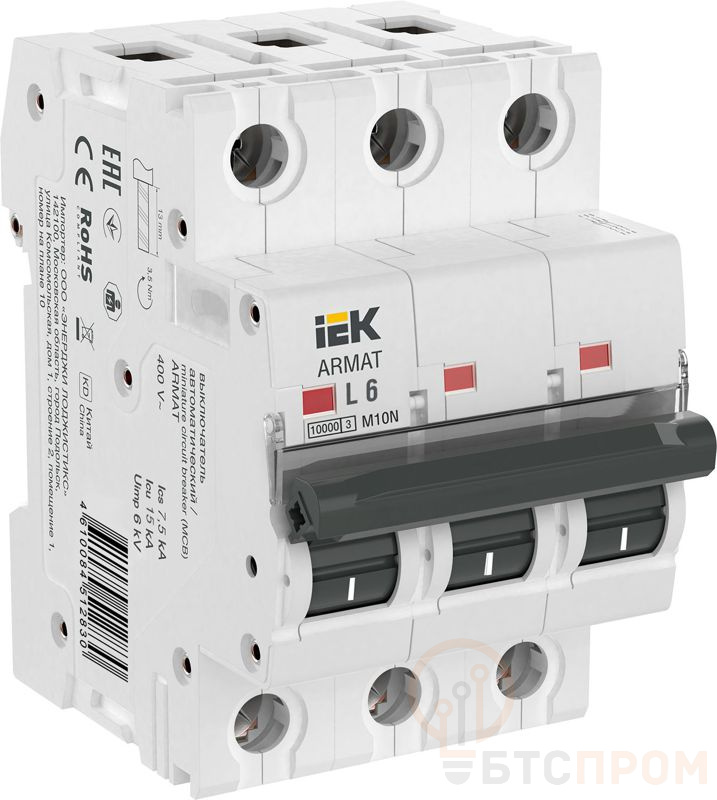 Выключатель автоматический модульный 3п L 6А M10N ARMAT IEK AR-M10N-3-L006 фото в каталоге от BTSprom.by