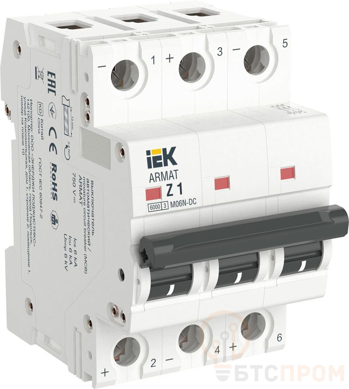 –Выключатель автоматический модульный 3п Z 1А M06N-DC ARMAT IEK AR-M06N-3-Z001DC