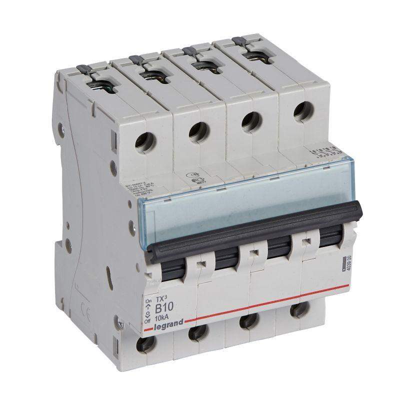 –Выключатель автоматический модульный 4п B 10А 10кА TX3 6000 4мод. 400В Leg 403900