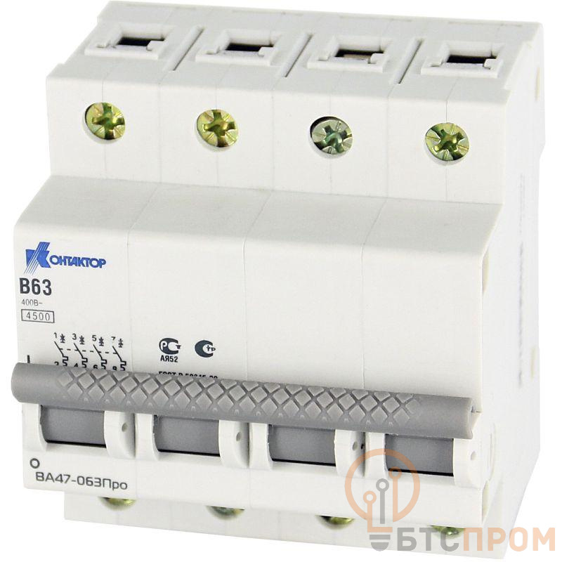 Автоматический выключатель модульный 4-полюсный B16 2А 4.5кА ВА47-063Про (7000061) от Контактор — это надежное устройство для защиты электрических цепей от токов короткого замыкания и перегрузки. Номинальный ток аппарата составляет 2 Ампера, а характеристика срабатывания «B» обеспечивает моментальное отключение при превышении тока в 3-5 раз от номинала, что идеально для цепей с активной нагрузкой.