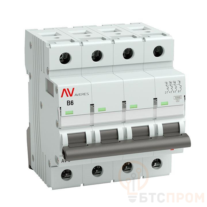 Выключатель автоматический модульный 4п B 6А 10кА AV-10 AVERES EKF mcb10-4-06B-av фото в каталоге от BTSprom.by