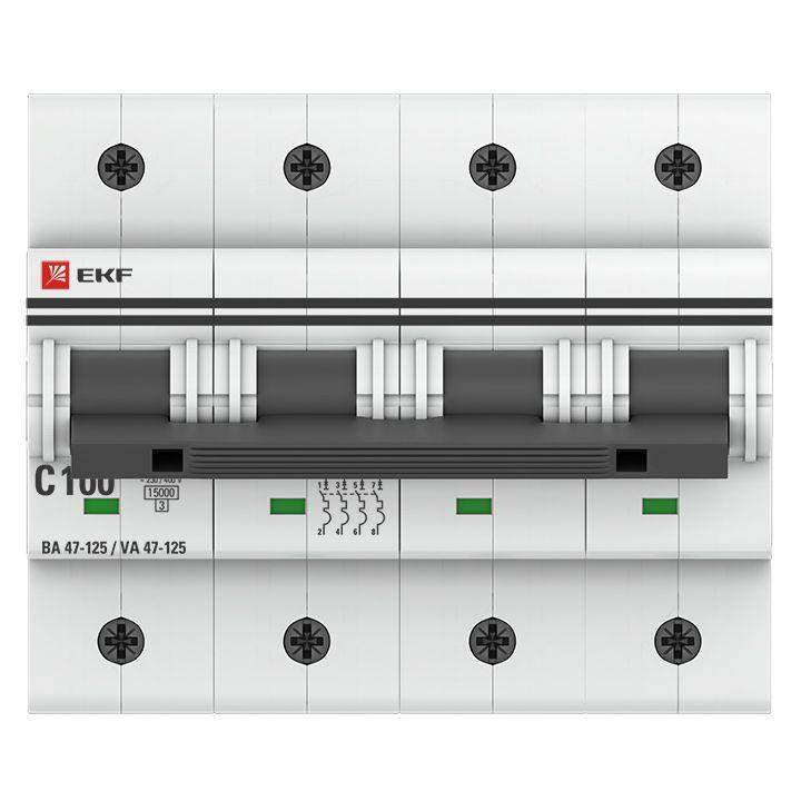 –Выключатель автоматический модульный 4п C 100А 15кА ВА 47-125 PROxima EKF mcb47125-4-100C