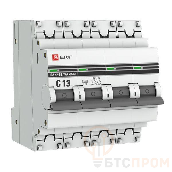 Выключатель автоматический модульный 4п C 13А 4.5кА ВА 47-63 PROxima EKF mcb4763-4-13C-pro фото в каталоге от BTSprom.by