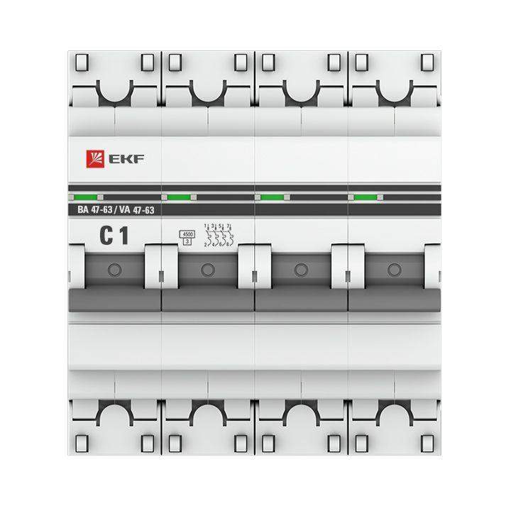 –Выключатель автоматический модульный 4п C 1А 4.5кА ВА 47-63 PROxima EKF mcb4763-4-01C-pro