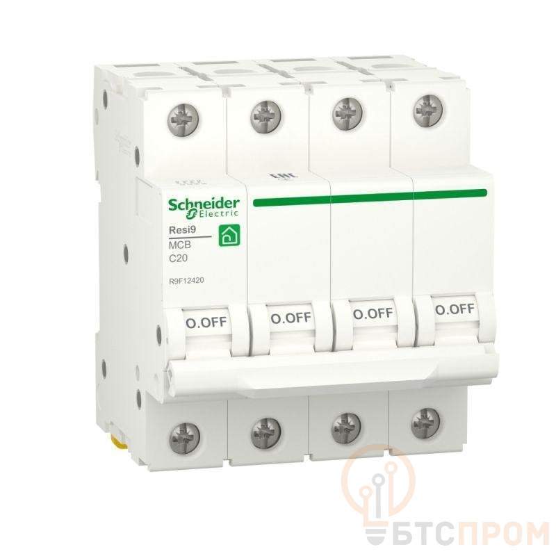 Выключатель автоматический модульный 4п C 20А Resi9 6000А SchE R9F12420 фото в каталоге от BTSprom.by