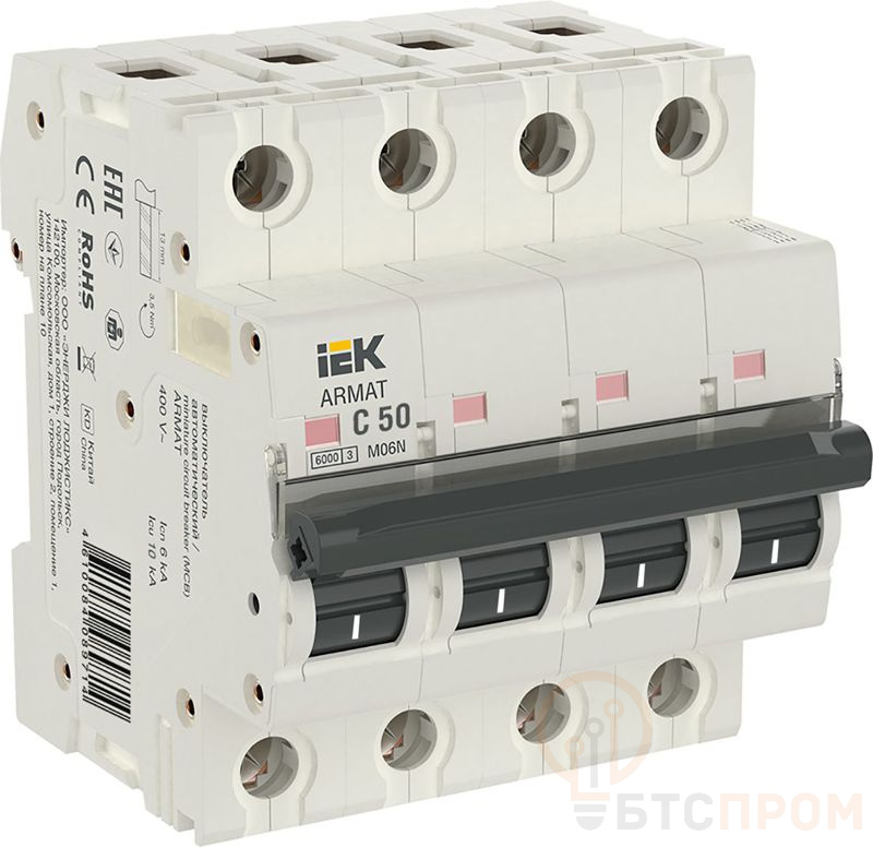 Выключатель автоматический модульный 4п C 50А M06N ARMAT IEK AR-M06N-4-C050 фото в каталоге от BTSprom.by