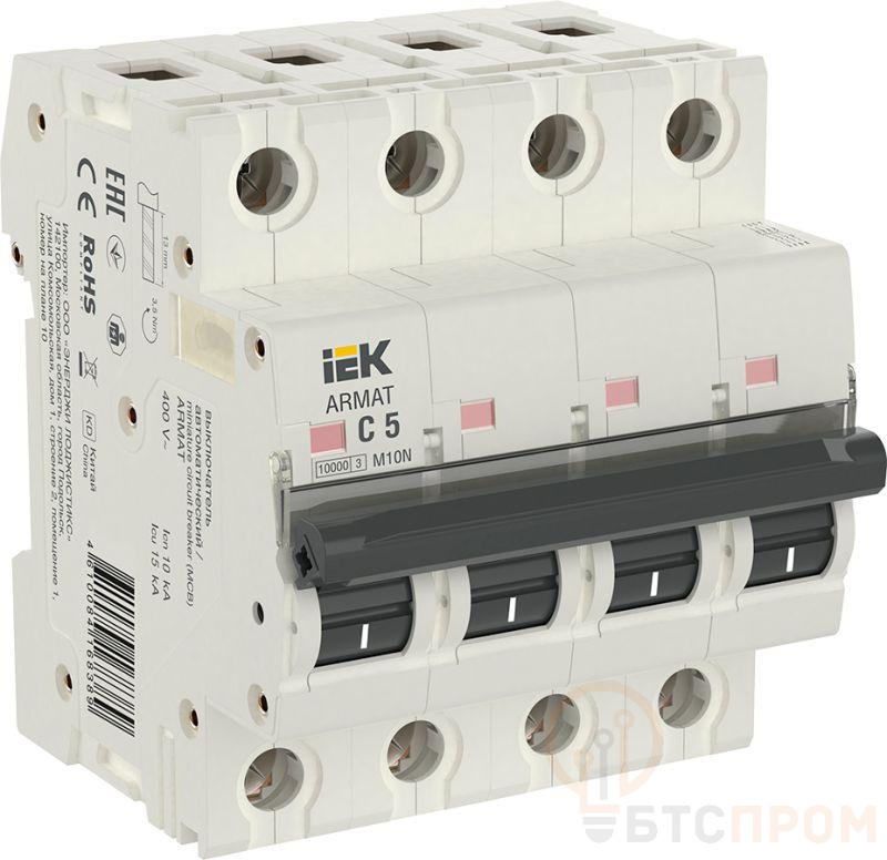 Выключатель автоматический модульный 4п C 5А M10N ARMAT IEK AR-M10N-4-C005 фото в каталоге от BTSprom.by