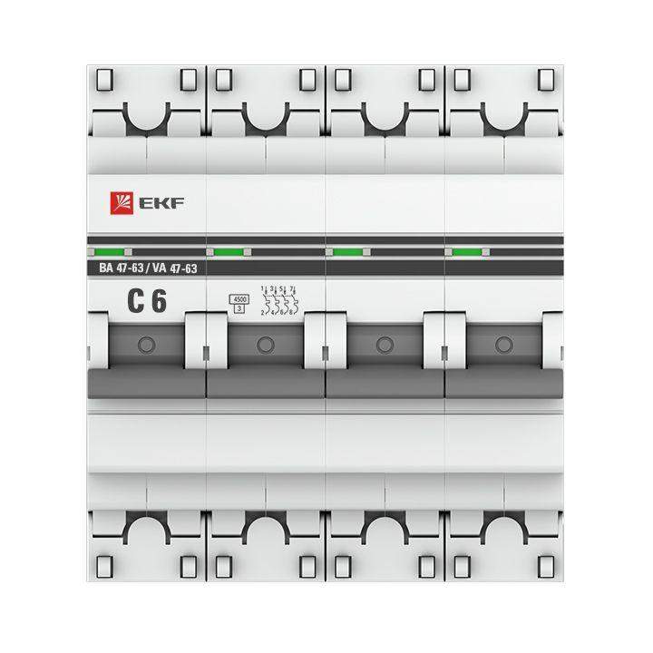 –Выключатель автоматический модульный 4п C 6А 4.5кА ВА 47-63 PROxima EKF mcb4763-4-06C-pro