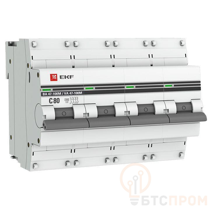 Выключатель автоматический модульный 4п C 80А 10кА ВА 47-100M электромагнит. расцеп. PROxima EKF mcb47100m-4-80C-pro