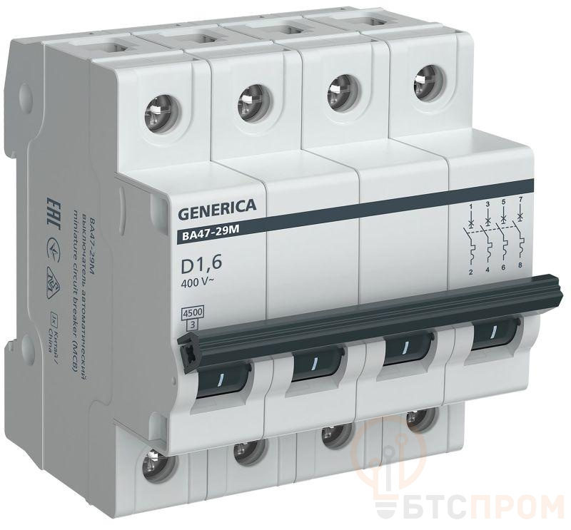 Выключатель автоматический модульный 4п D 1.6А 4.5кА ВА47-29М GENERICA MVA21-4-D16-D-G фото в каталоге от BTSprom.by