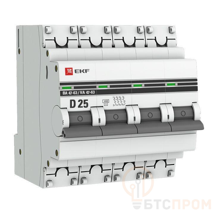 Выключатель автоматический модульный 4п D 25А 4.5кА ВА 47-63 PROxima EKF mcb4763-4-25D-pro фото в каталоге от BTSprom.by