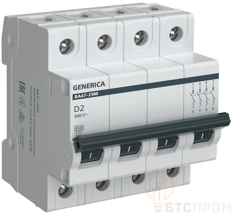 Выключатель автоматический модульный 4п D 2А 4.5кА ВА47-29М GENERICA MVA21-4-002-D-G фото в каталоге от BTSprom.by