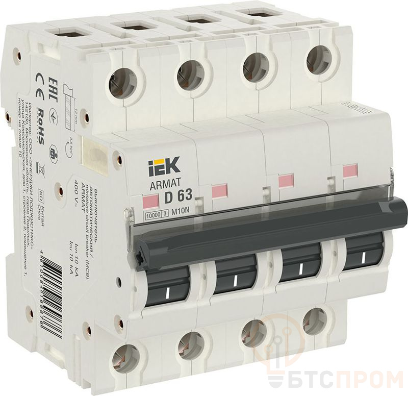 Выключатель автоматический модульный 4п D 63А M10N ARMAT IEK AR-M10N-4-D063 фото в каталоге от BTSprom.by