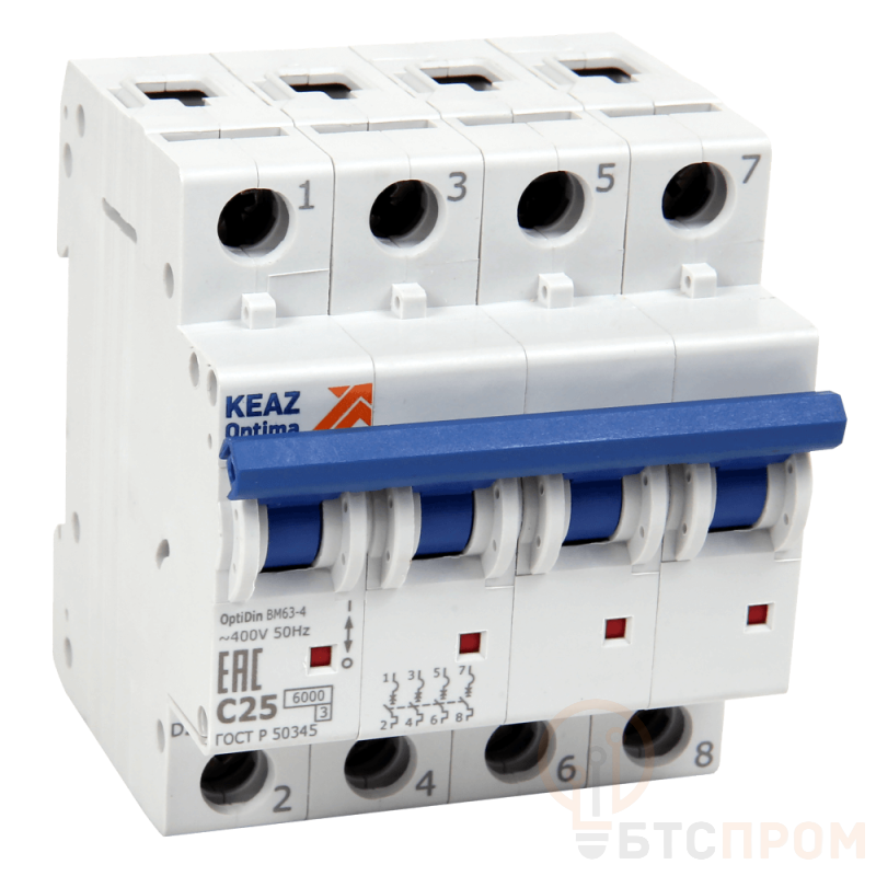 Выключатель автоматический модульный 4п D 6А 6кА OptiDin BM63-4ND6-УХЛ3-РЕГ КЭАЗ 280551 фото в каталоге от BTSprom.by