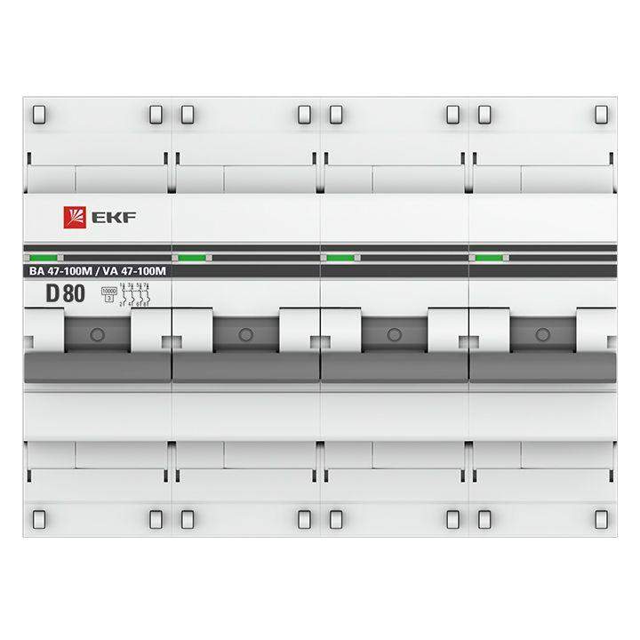 Выключатель автоматический модульный 4п D 80А 10кА ВА 47-100M электромагнит. расцеп. PROxima EKF mcb47100m-4-80D-pro