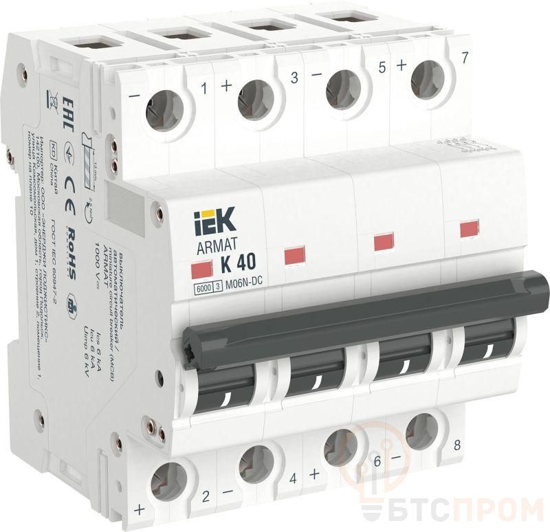 Выключатель автоматический модульный 4п K 40А M06N-DC ARMAT IEK AR-M06N-4-K040DC фото в каталоге от BTSprom.by