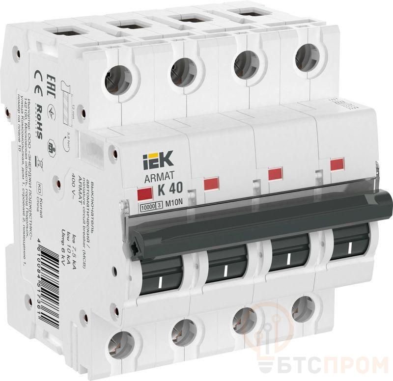 Выключатель автоматический модульный 4п K 40А M10N ARMAT IEK AR-M10N-4-K040 фото в каталоге от BTSprom.by