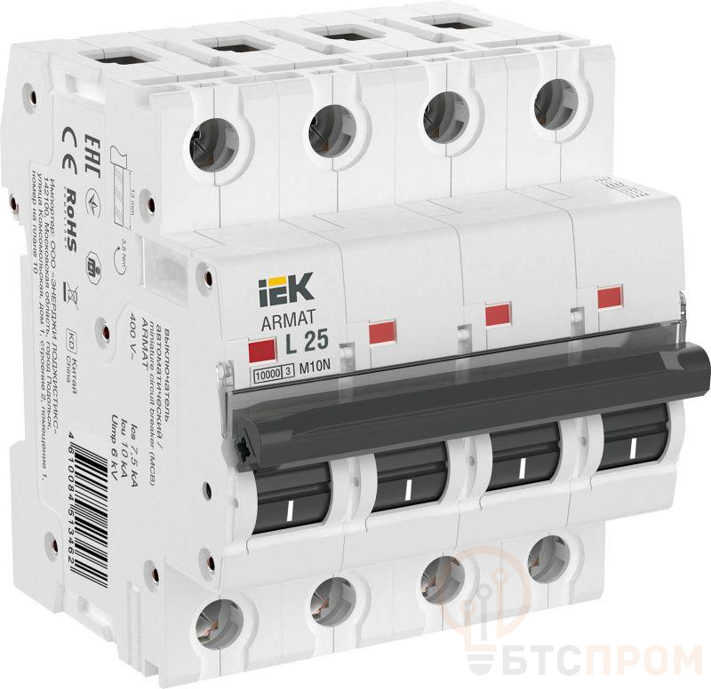 Выключатель автоматический модульный 4п L 25А M10N ARMAT IEK AR-M10N-4-L025 фото в каталоге от BTSprom.by