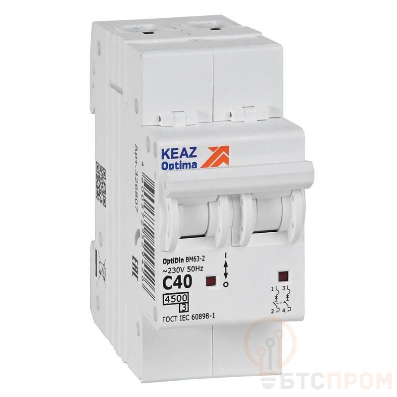 Модульный автоматический 2 полюсный выключатель переменного тока с предельной коммутационной способностью при переменном токе 4,5 кА на номинальный ток 40 А.