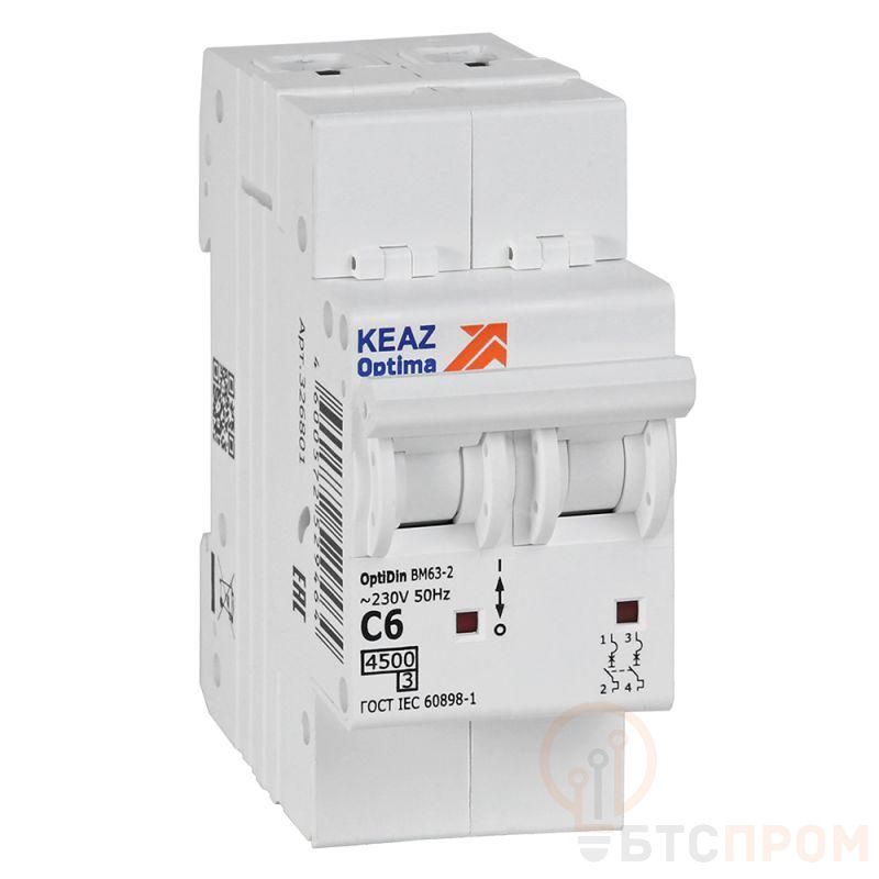 Модульный автоматический 2 полюсный выключатель переменного тока с предельной коммутационной способностью при переменном токе 4,5 кА на номинальный ток 6 А.