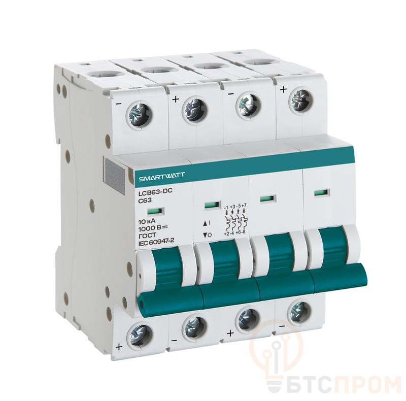 Выключатель автоматический модульный PDE LCB63H-DC-D16/4 16А 4P кривая D 10кА SmartWatt 4512020490034