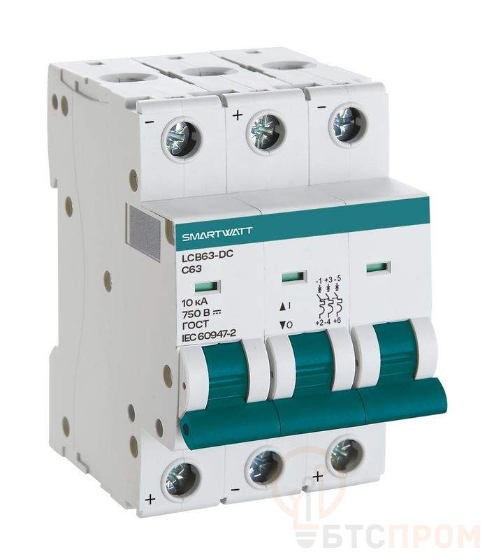 Выключатель автоматический модульный PDE LCB63H-DC-L63/3 63А 3P кривая L 10кА SmartWatt 4512020490233