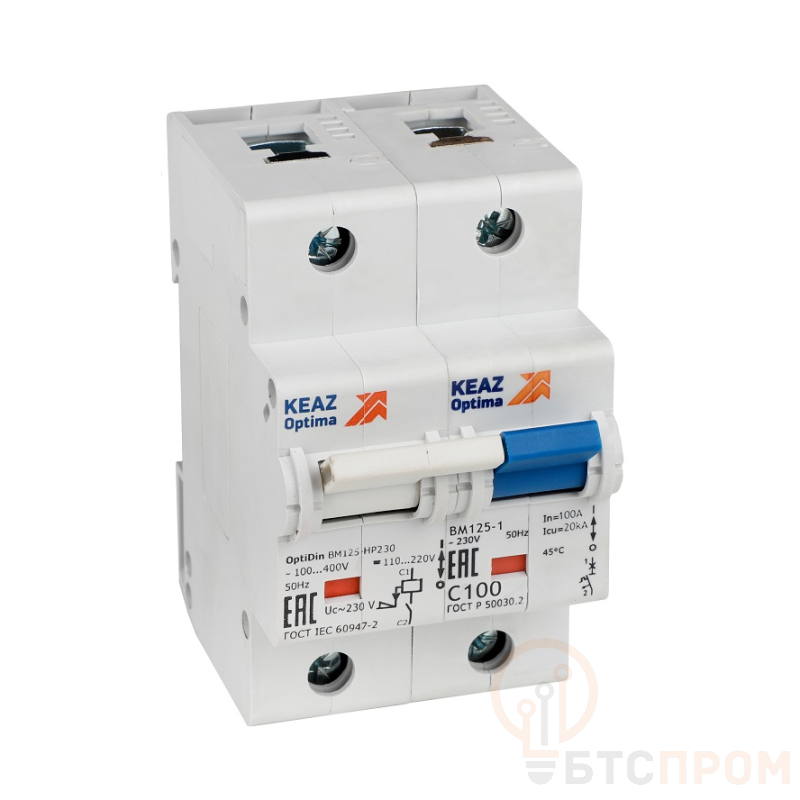 Выключатель автоматический модульный 1п C 100А 10кА OptiDin BM125-1C100-НР-8ln-УХЛ3 с независимым расцепителем КЭАЗ 336363