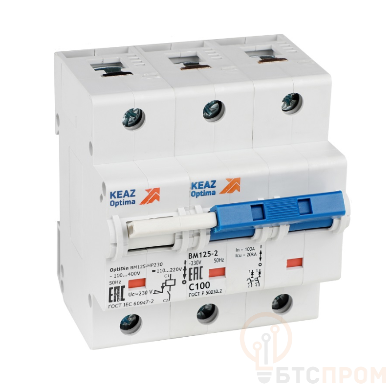 Выключатель автоматический модульный 2п C 100А 10кА OptiDin BM125-2C100-НР-8ln-УХЛ3 с независимым расцепителем КЭАЗ 336368