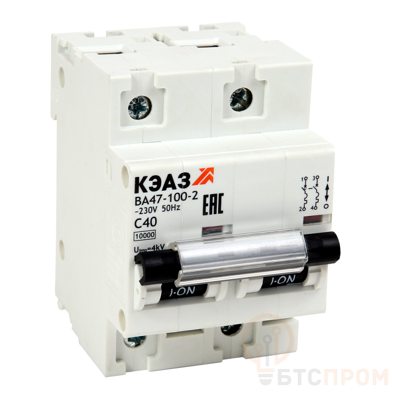 Модульный автоматический 2 полюсный выключатель переменного тока с предельной коммутационной способностью при переменном токе 10 кА на номинальный ток 25 А .
