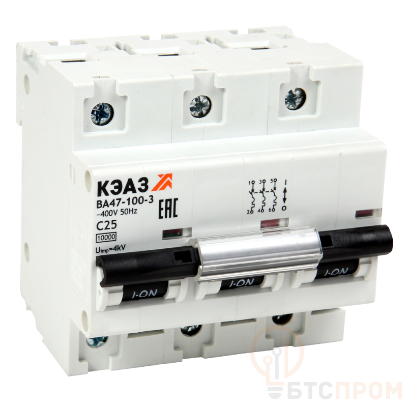 Модульный автоматический 3 полюсный выключатель переменного тока с предельной коммутационной способностью при переменном токе 10 кА на номинальный ток 125 А .